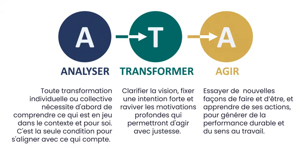 En créant ATA coaching, j’ai décidé de contribuer à rendre les organisations plus alignées en agissant à ces 3 niveaux : individuel, collectif et organisation.